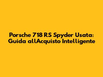 Porsche 718 RS Spyder Usata: Guida All'Acquisto Intelligente
