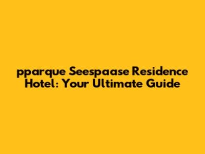 Pparque Seespaase Residence Hotel: Your Ultimate Guide