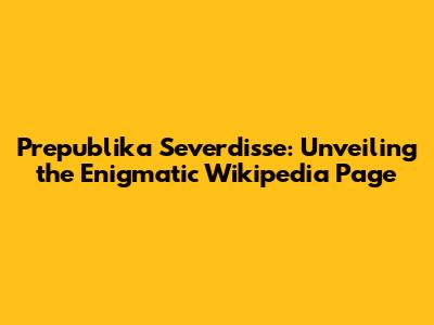 Prepublika Severdisse: Unveiling The Enigmatic Wikipedia Page