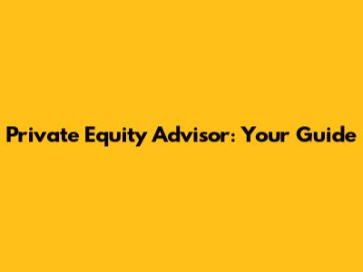 Private Equity Advisor: Your Guide