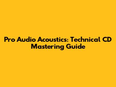 Pro Audio Acoustics: Technical CD Mastering Guide