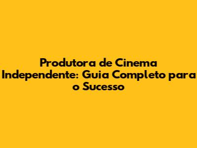 Produtora De Cinema Independente: Guia Completo Para O Sucesso