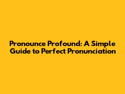 Pronounce Profound: A Simple Guide To Perfect Pronunciation