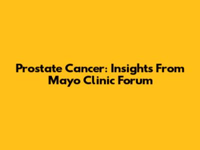 Prostate Cancer: Insights From Mayo Clinic Forum