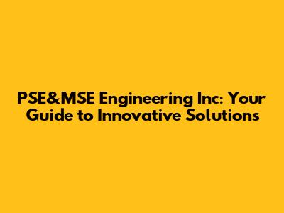 PSE&MSE Engineering Inc: Your Guide To Innovative Solutions
