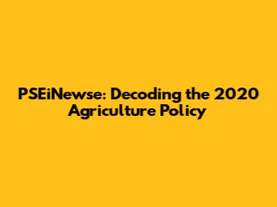 PSEiNewse: Decoding The 2020 Agriculture Policy