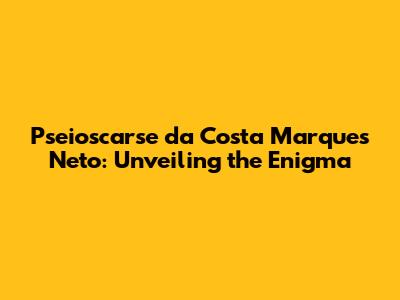 Pseioscarse Da Costa Marques Neto: Unveiling The Enigma