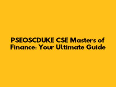 PSEOSCDUKE CSE Masters Of Finance: Your Guide
