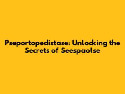 Pseportopedistase: Unlocking The Secrets Of Seespaolse