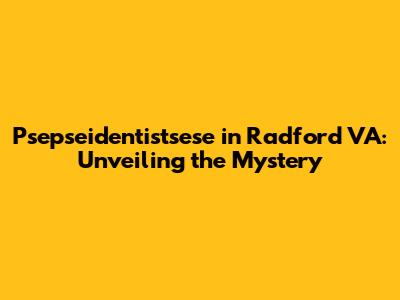 Psepseidentistsese In Radford VA: Unveiling The Mystery
