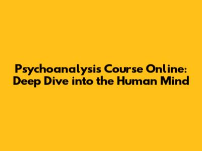 Psychoanalysis Course Online: Deep Dive Into The Human Mind