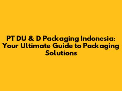 PT DU & D Packaging Indonesia: A Comprehensive Guide