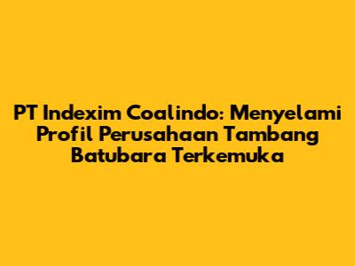 PT Indexim Coalindo adalah salah satu perusahaan tambang batubara yang cukup dikenal di Indonesia. Bagi kalian yang penasaran dengan seluk-beluk perusahaan ini, mulai dari profil hingga siapa pemiliknya, kalian berada di tempat yang tepat, guys! Mari kita bedah tuntas informasi seputar PT Indexim Coalindo. Dalam artikel ini, kita akan membahas secara komprehensif mengenai profil perusahaan, sejarah singkat, kegiatan operasional, lokasi tambang, serta yang paling penting, informasi terkini mengenai kepemilikan perusahaan. Jadi, simak terus, ya!