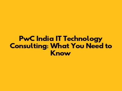 PwC India IT Technology Consulting: What You Need To Know