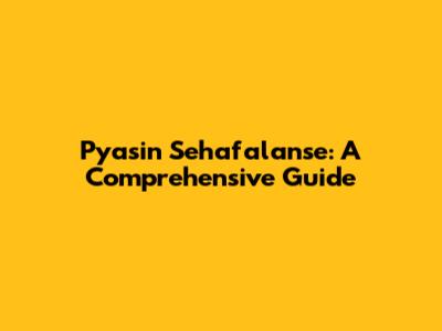 Pyasin Sehafalanse: A Comprehensive Guide