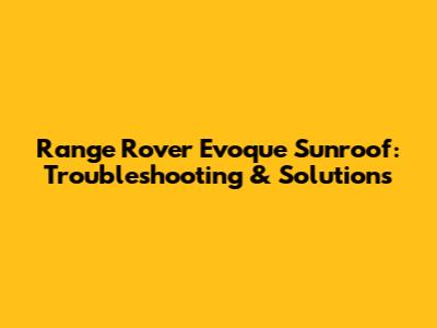 Range Rover Evoque Sunroof: Troubleshooting & Solutions