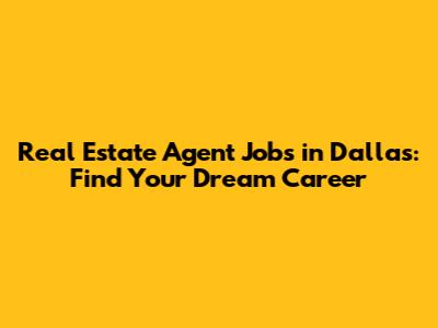 Real Estate Agent Jobs In Dallas: Find Your Dream Career