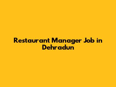 Restaurant Manager Job: Opportunities In Dehradun