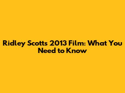 Ridley Scott's 2013 Film: What You Need To Know