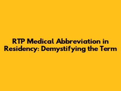 RTP: Decoding The Residency Abbreviation In Medicine