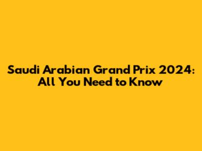 Saudi Arabian Grand Prix 2024: All You Need To Know