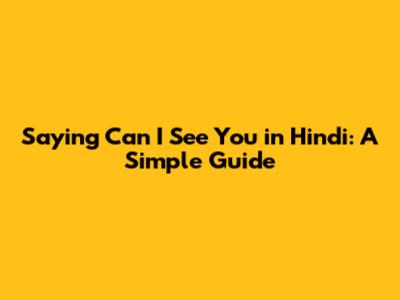 Saying 'Can I See You' In Hindi: A Simple Guide