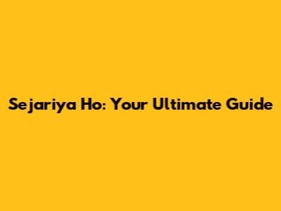 Sejariya Ho: A Comprehensive Guide