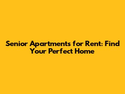 Senior Apartments For Rent: Find Your Perfect Home