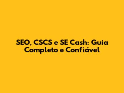SEO, CSCS E SE Cash: Guia Completo E Confiável