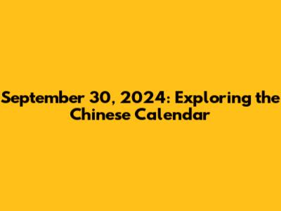 Understanding the Chinese calendar can seem like diving into a whole new world, especially when you’re trying to figure out a specific date like September 30, 2024. So, let’s break it down and make it super easy to grasp. We'll explore what the Chinese calendar is all about, how it differs from the Gregorian calendar we commonly use, and what September 30, 2024, might look like in the Chinese zodiac and elements. Trust me, it’s more interesting than it sounds! The Chinese calendar, also known as the Lunar calendar or the Agricultural calendar, is a lunisolar calendar. That means it takes into account both the cycles of the moon and the sun. Unlike the Gregorian calendar, which is purely solar-based, the Chinese calendar’s dates indicate both the moon phase and the time of the solar year. This makes it crucial for agricultural activities and traditional festivals in Chinese culture. Each year in the Chinese calendar is associated with an animal from the Chinese zodiac. There are twelve animals in total, making up a twelve-year cycle. These animals are the Rat, Ox, Tiger, Rabbit, Dragon, Snake, Horse, Goat (or Sheep), Monkey, Rooster, Dog, and Pig. In addition to the zodiac animals, each year is also associated with one of the five elements: Wood, Fire, Earth, Metal, and Water. These elements cycle every two years, and each element is associated with different characteristics and influences. When combined, the zodiac animal and the element create a sixty-year cycle, offering a rich tapestry of astrological significance. To figure out September 30, 2024, in the Chinese calendar, we need to consider both the animal and the element associated with that year. 2024 is the Year of the Dragon, specifically the Wood Dragon. This combination is considered particularly auspicious, blending the Dragon's strength and ambition with Wood's creativity and growth. September 30, 2024, would fall within the lunar month influenced by the zodiac animal sign and element of the year. While the exact day might not have a specific designation unless you consult a detailed Chinese almanac, the overall energies of the Wood Dragon would be prevalent. This means the day is generally considered favorable for new beginnings, innovation, and pursuing ambitious goals. So, whether you’re planning a significant event or just curious about the cosmic influences, knowing the Chinese calendar’s context can add a unique dimension to your understanding of time and destiny.