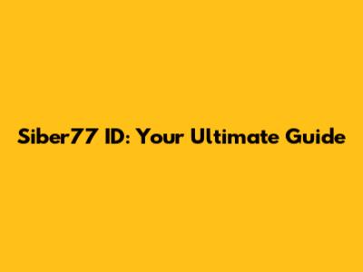 What Exactly is a Siber77 ID?