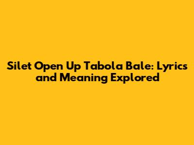 Decoding the Lyrics of Silet Open Up Tabola Bale
