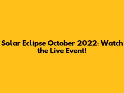 Solar Eclipse October 2022: Watch The Live Event!