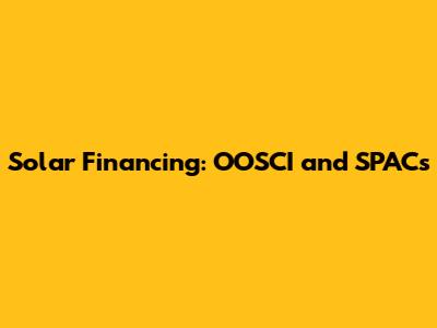 Solar Financing: OOSCI And SPACs