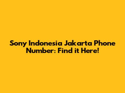 Sony Indonesia Jakarta Phone Number: Find It Here!