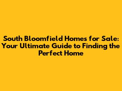 South Bloomfield Homes: Your Guide To Finding The Perfect Place