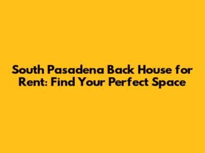 Finding a South Pasadena back house for rent can be a rewarding experience, offering a unique and comfortable living space in a desirable community. By following these tips and doing your research, you can find the perfect back house to call home. So, start your search today and discover the charm and convenience of living in a South Pasadena back house!