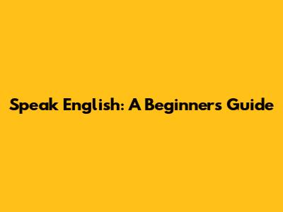 Speak English: A Beginner's Guide