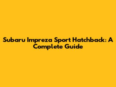 Subaru Impreza Sport Hatchback: A Complete Guide