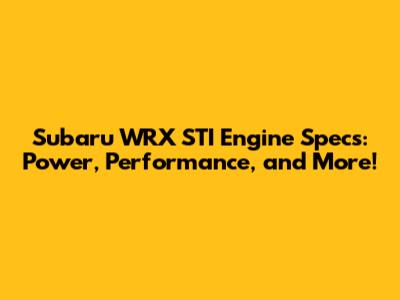 Subaru WRX STI Engine Specs: Power, Performance, And More!