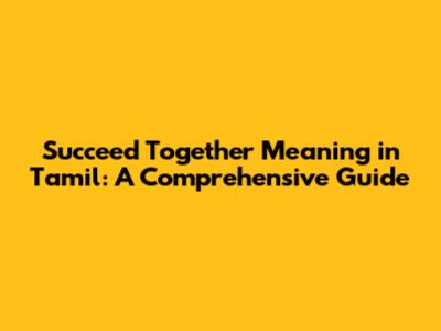 Succeed Together: Meaning & Importance (Tamil Explained)