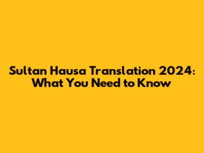 Sultan Hausa Translation 2024: What You Need To Know