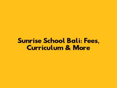 Sunrise School Bali: Fees, Curriculum & More