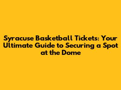 Syracuse Basketball Tickets: Your Ultimate Guide