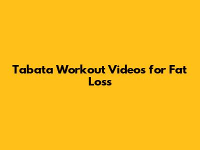 Tabata Workout Videos For Fat Loss