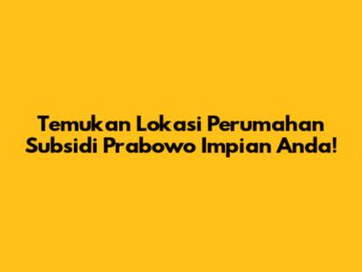 Temukan Lokasi Perumahan Subsidi Prabowo Impian Anda!