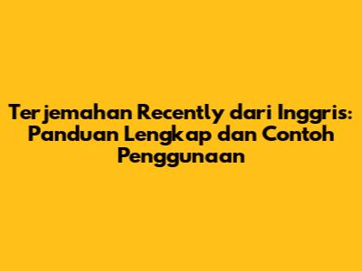 Terjemahan 'Recently' Dalam Bahasa Indonesia: Panduan Lengkap