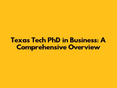 Texas Tech PhD In Business: A Comprehensive Overview