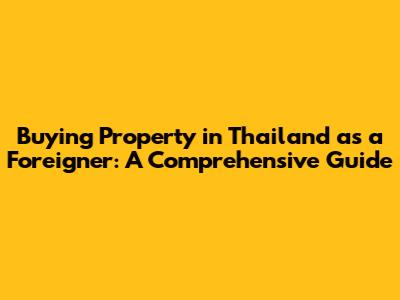 Hey guys! Thinking about snagging a piece of paradise in Thailand? Buying property in Thailand as a foreigner can seem like navigating a maze, but don't sweat it! This guide breaks down everything you need to know to make your Thai real estate dreams a reality. We'll cover the legal aspects, the types of properties you can own, financing options, and some essential tips to ensure a smooth and successful purchase.