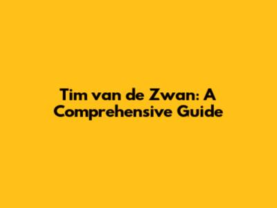Tim Van De Zwan: A Comprehensive Guide